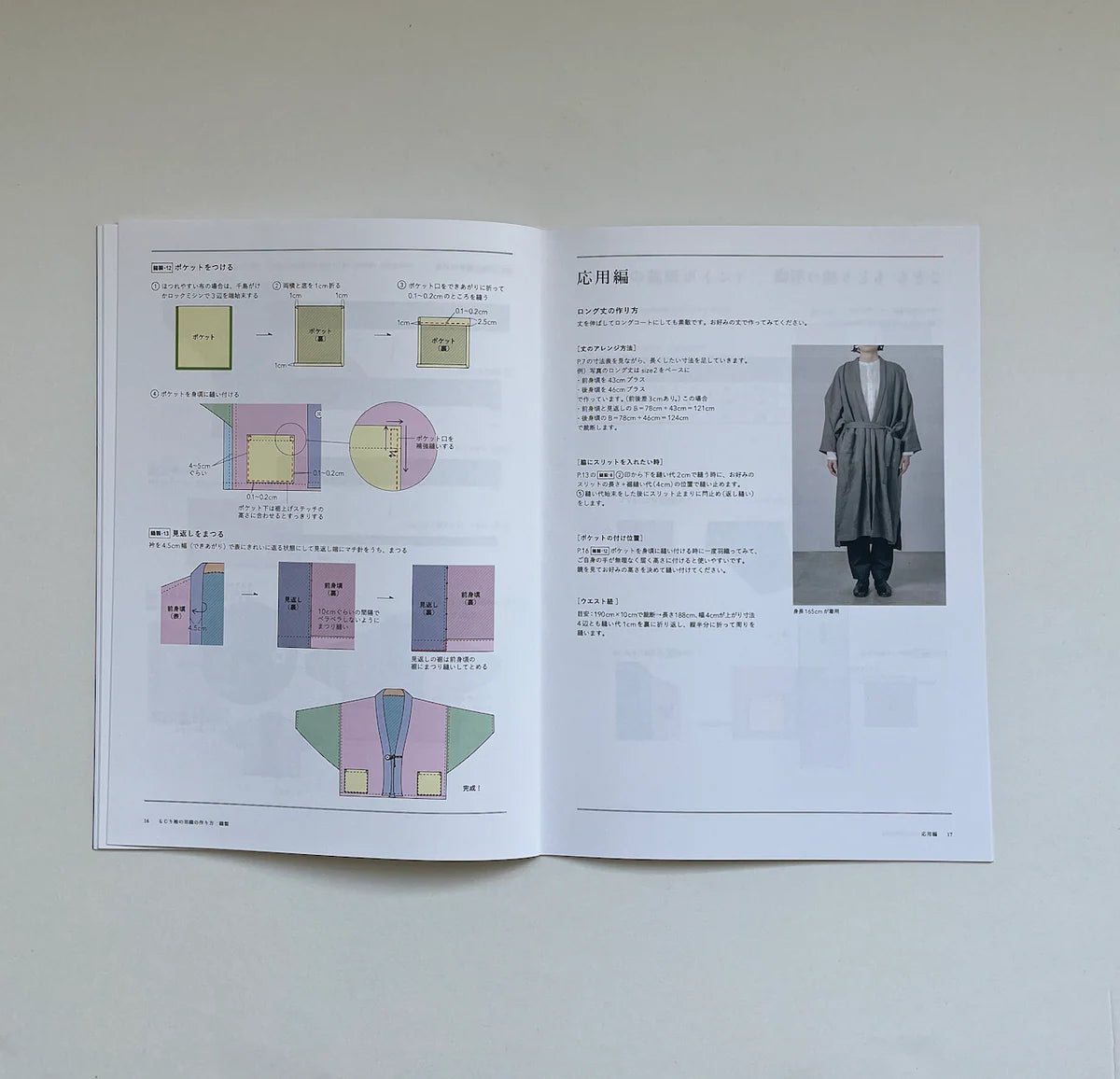 袖と衿の作り方が大きなポイントで、少し複雑ですが、この方法を覚えるとさまざまに応用ができそうです。作りの面白さも感じながら作ってみてくださいね。