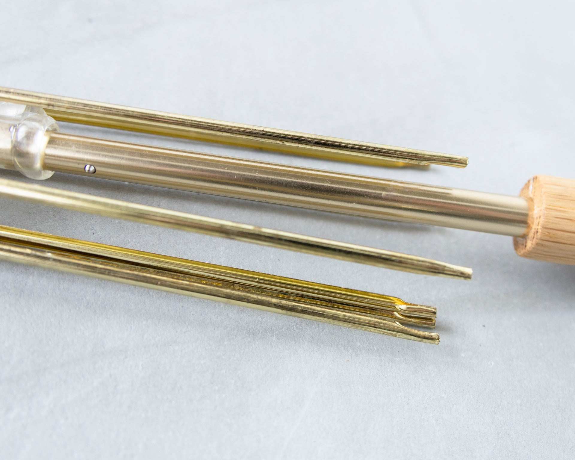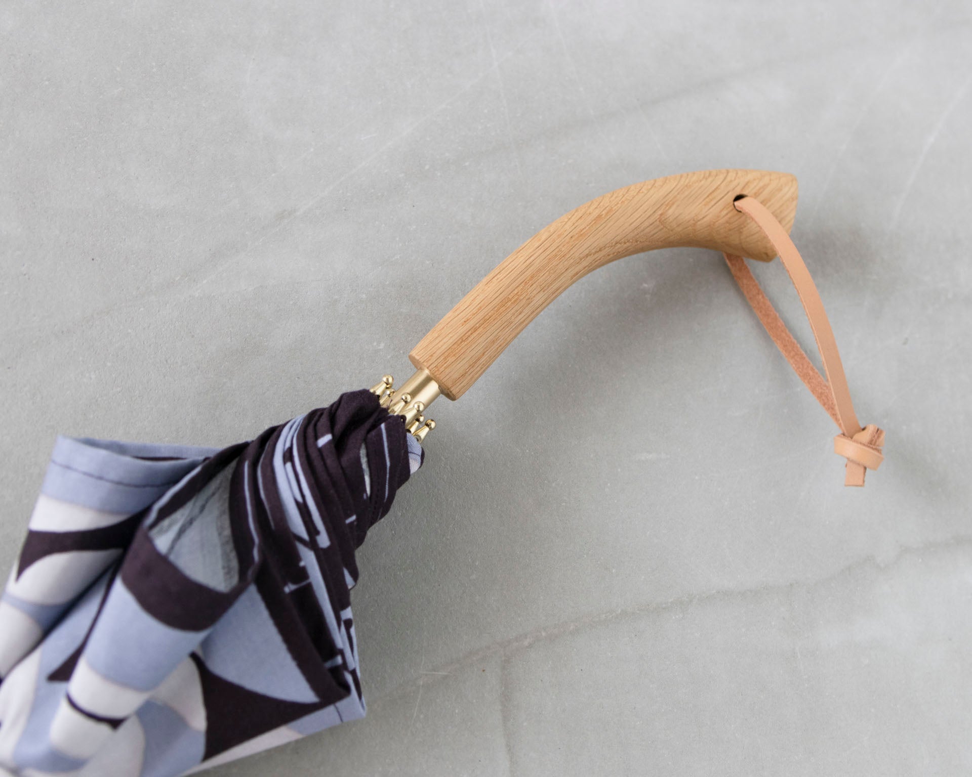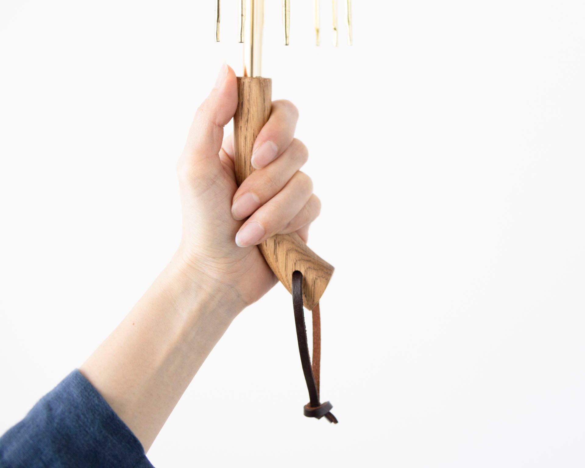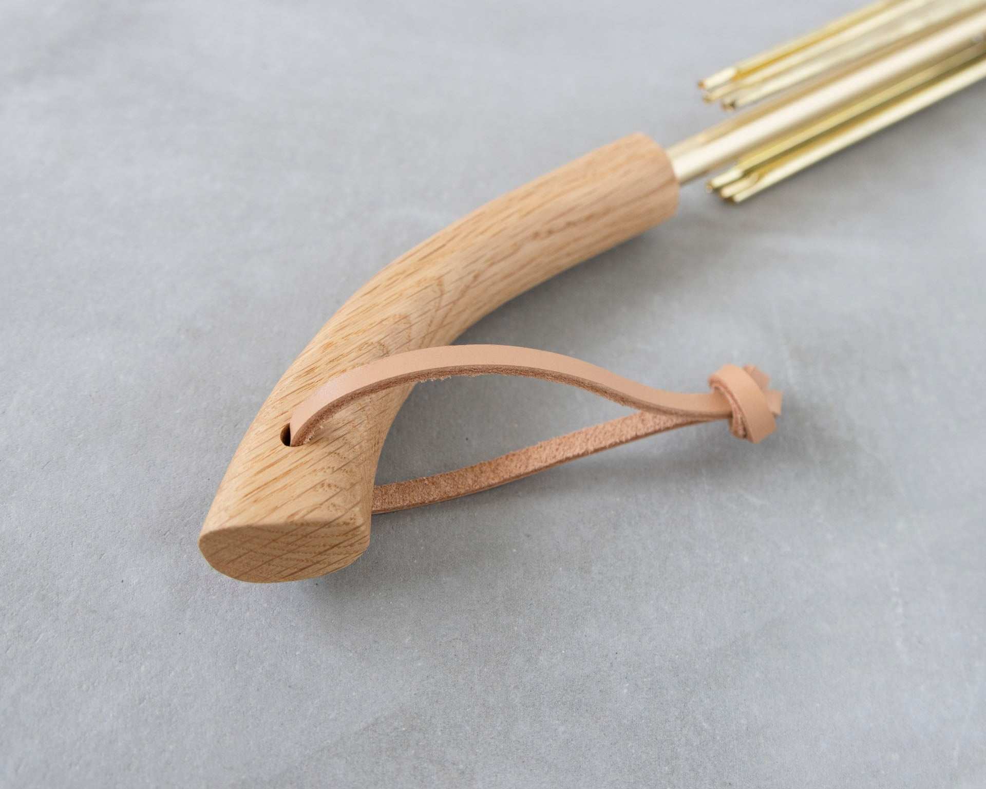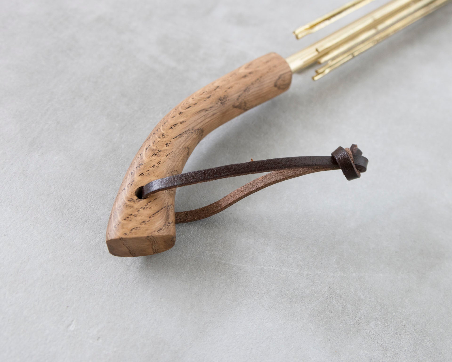 持ち手は職人により一点一点作られています。市販ではなかなか見かけないナラ材の持ち手は、手触りが良く、ゆるやかなカーブが手によくフィットします。