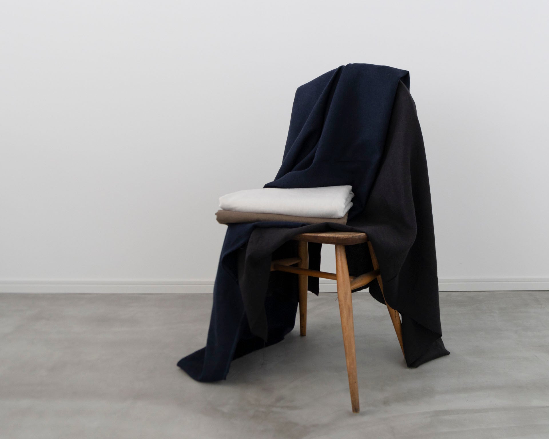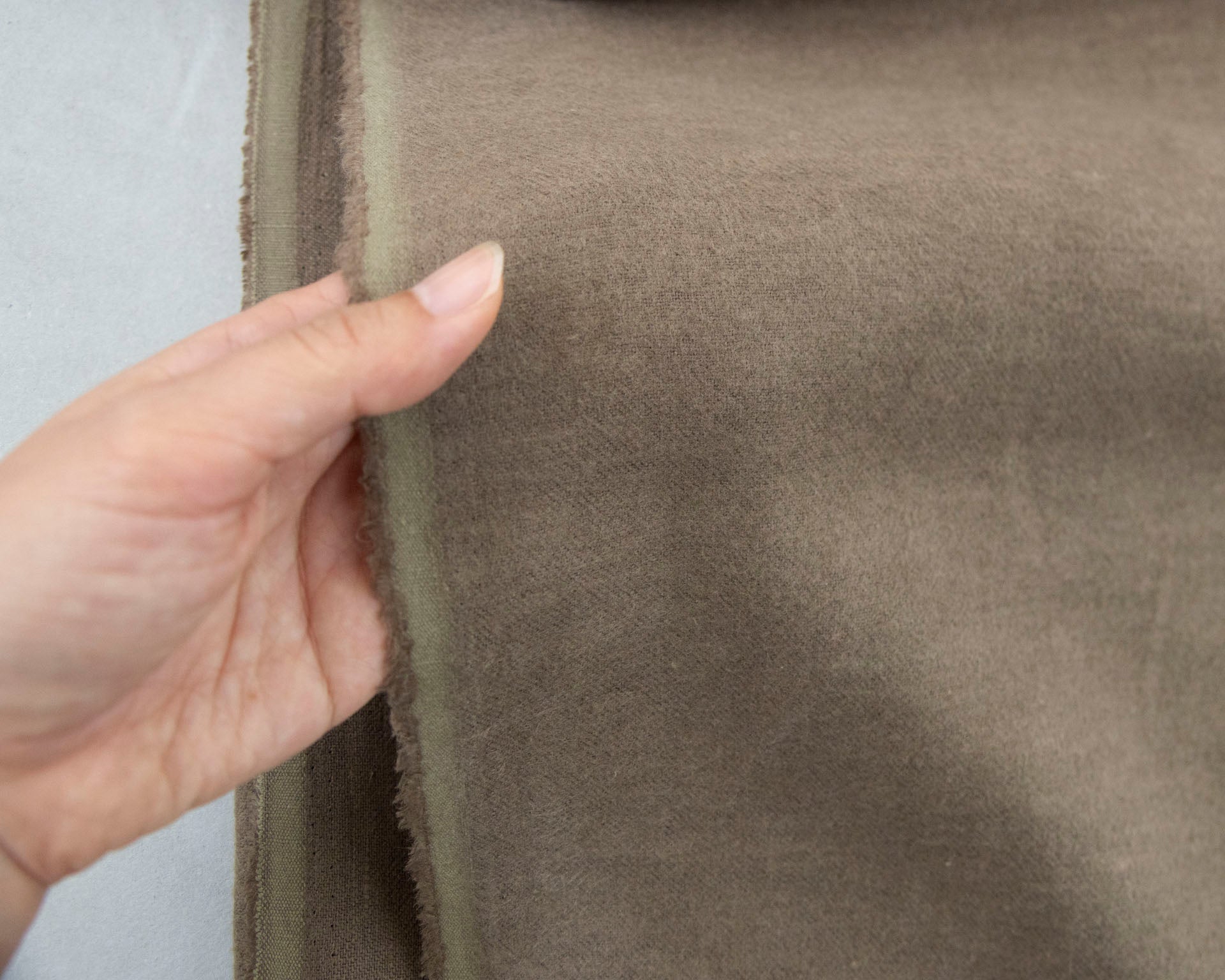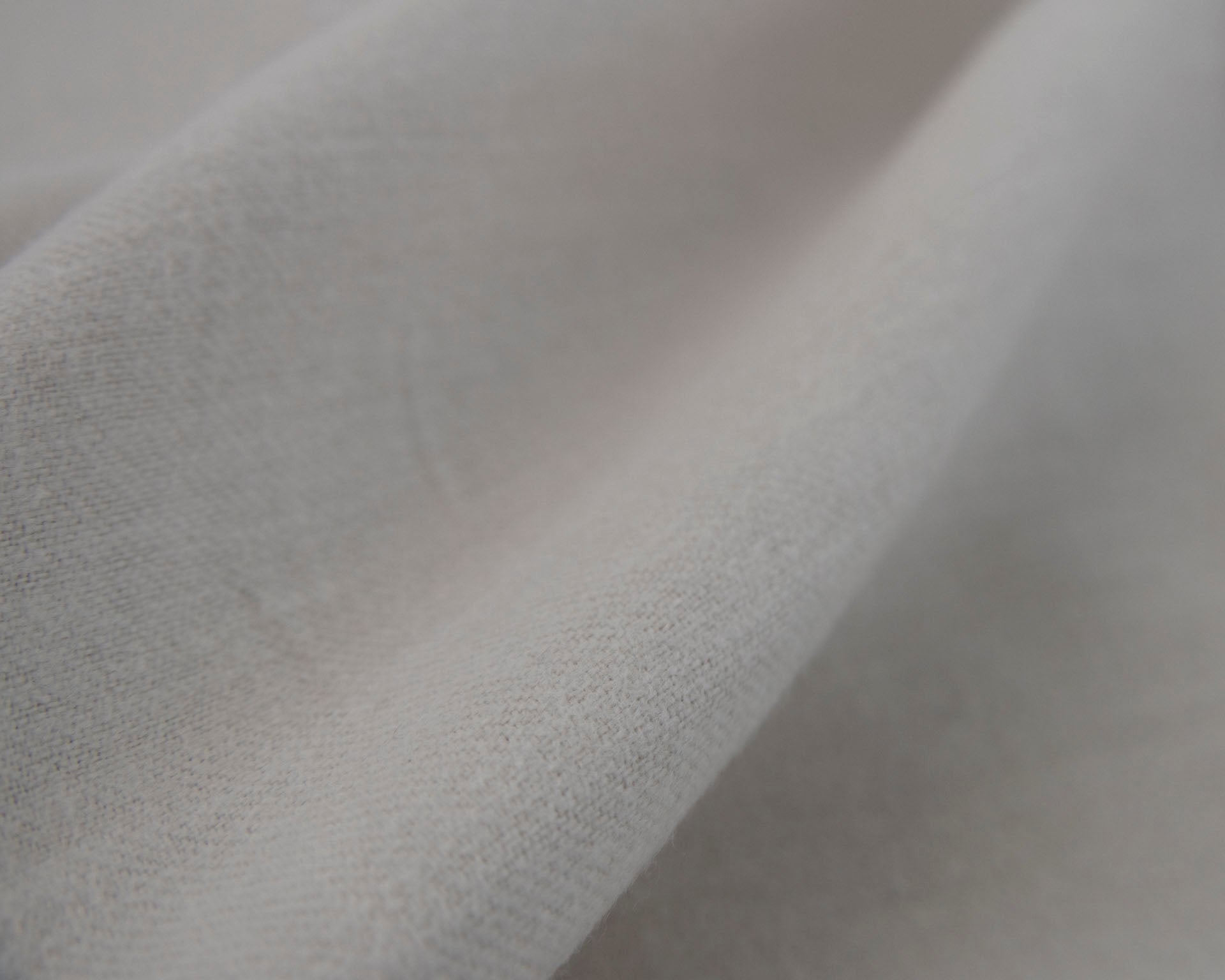 表面にのみ起毛を施しており、サラッとしながらも温かみのある風合いです。リネンのざっくりとした表情に柔らかさがプラスされた素材です。