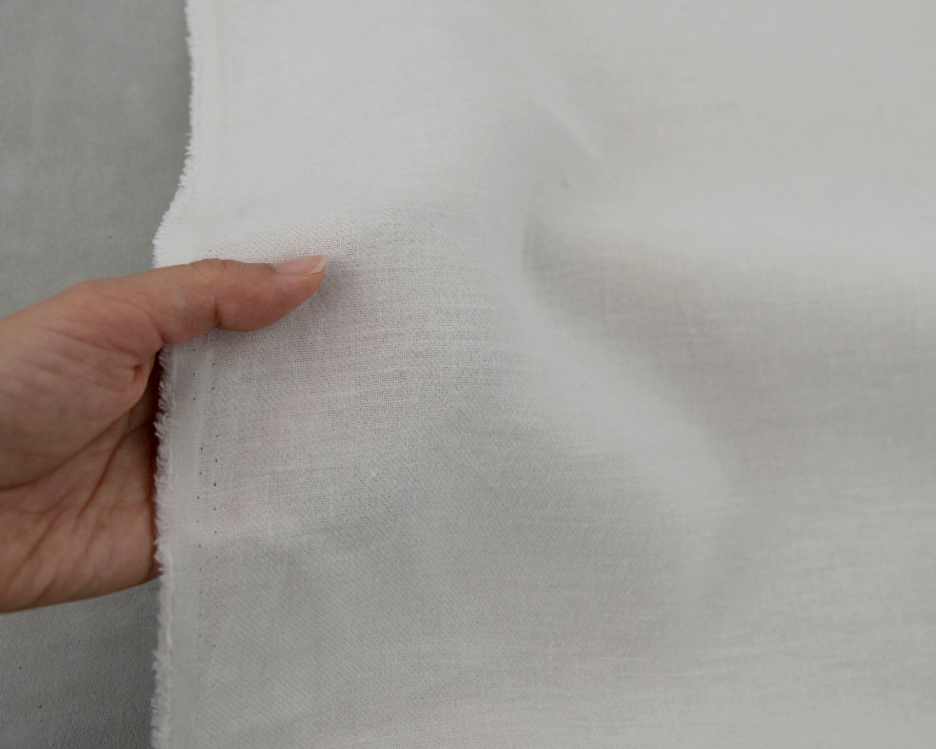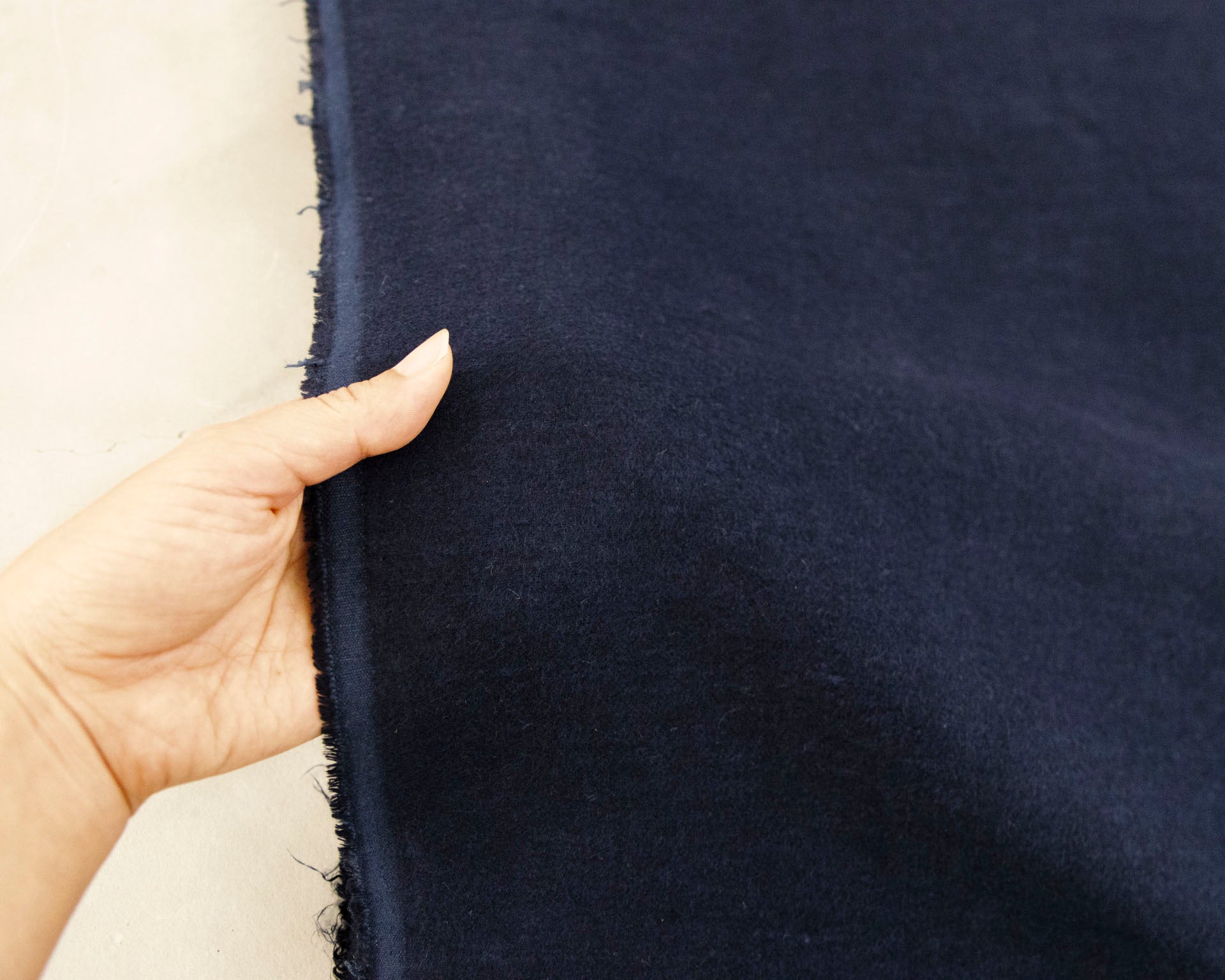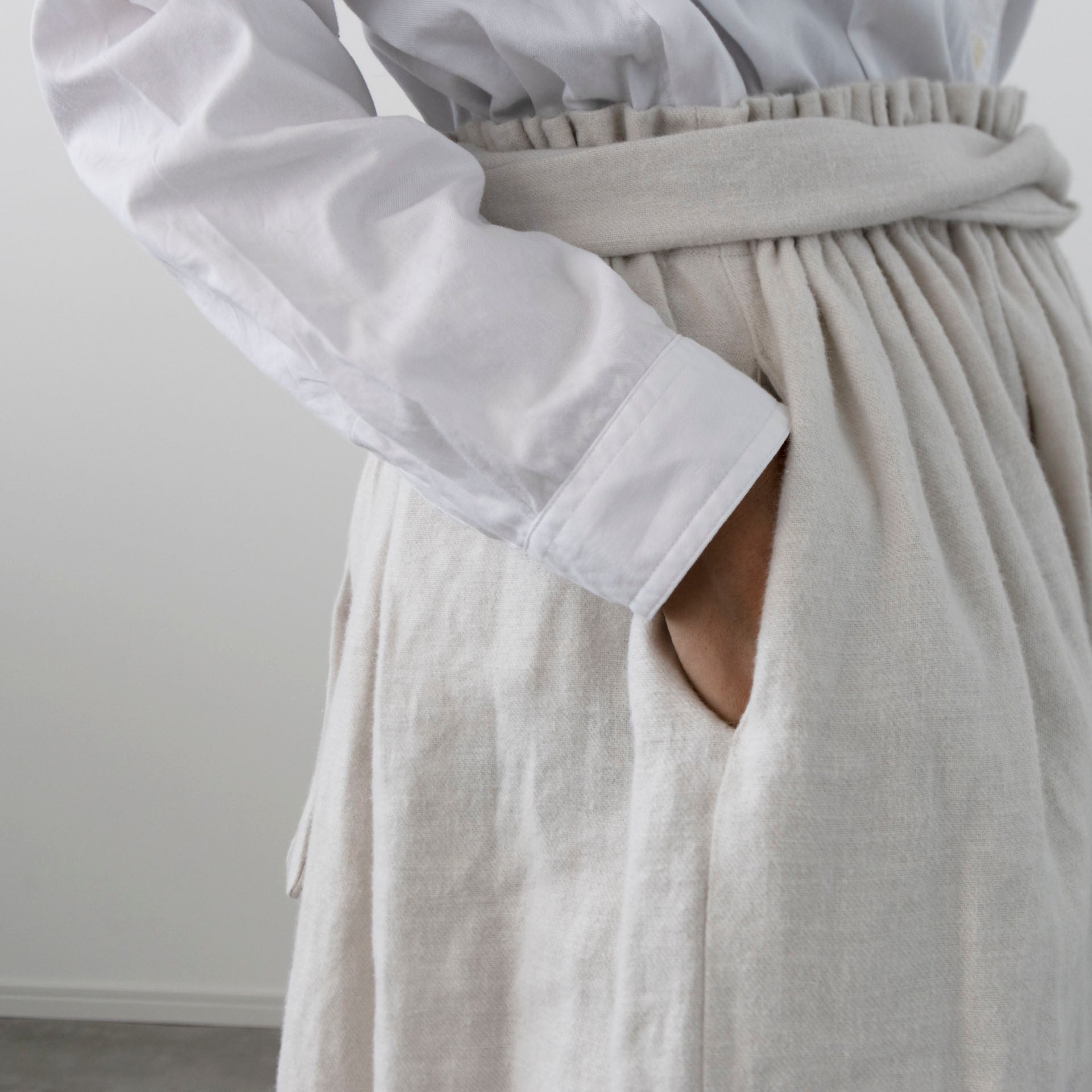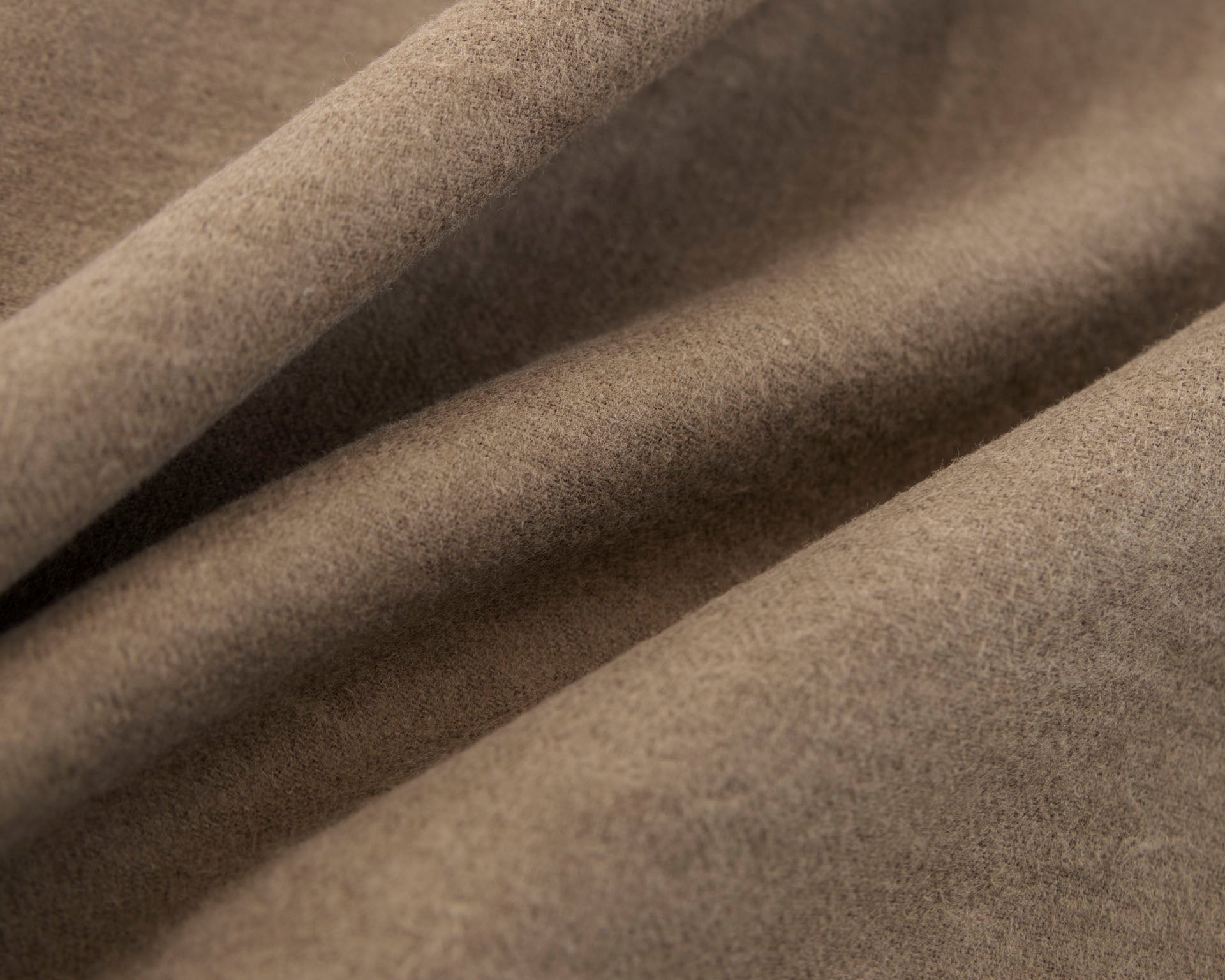 表面にのみ起毛を施しており、サラッとしながらも温かみのある風合いです。リネンのざっくりとした表情に柔らかさがプラスされた素材です。