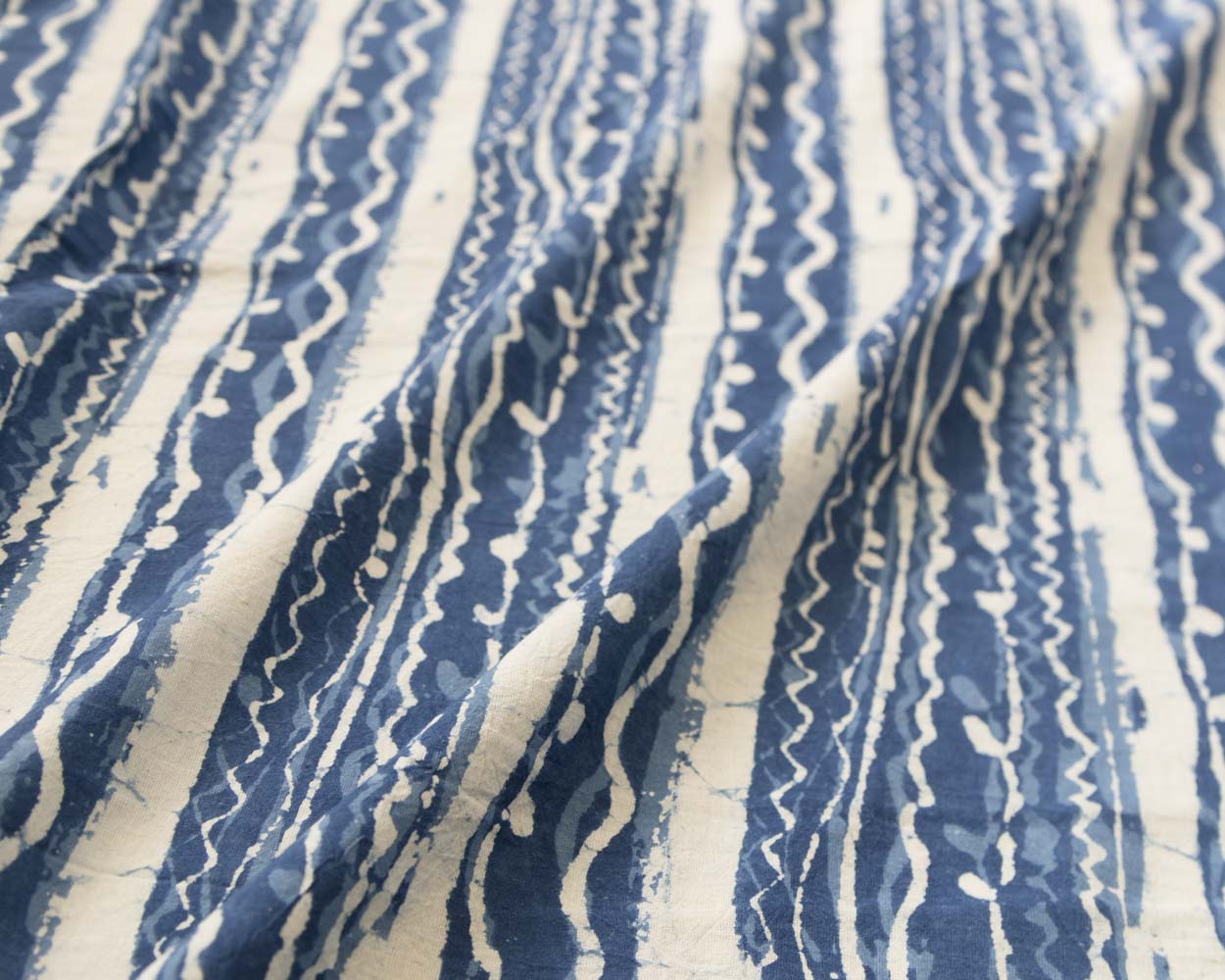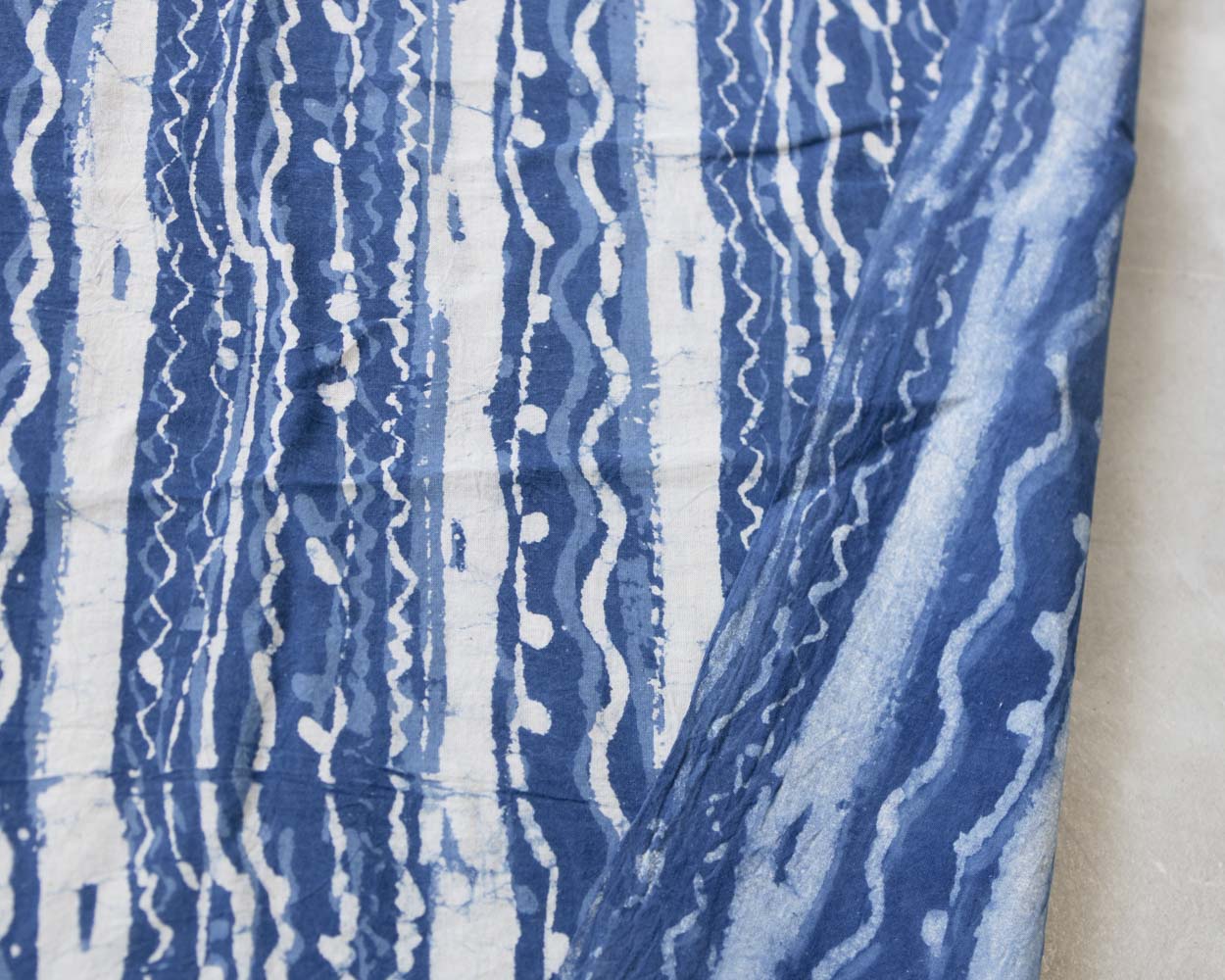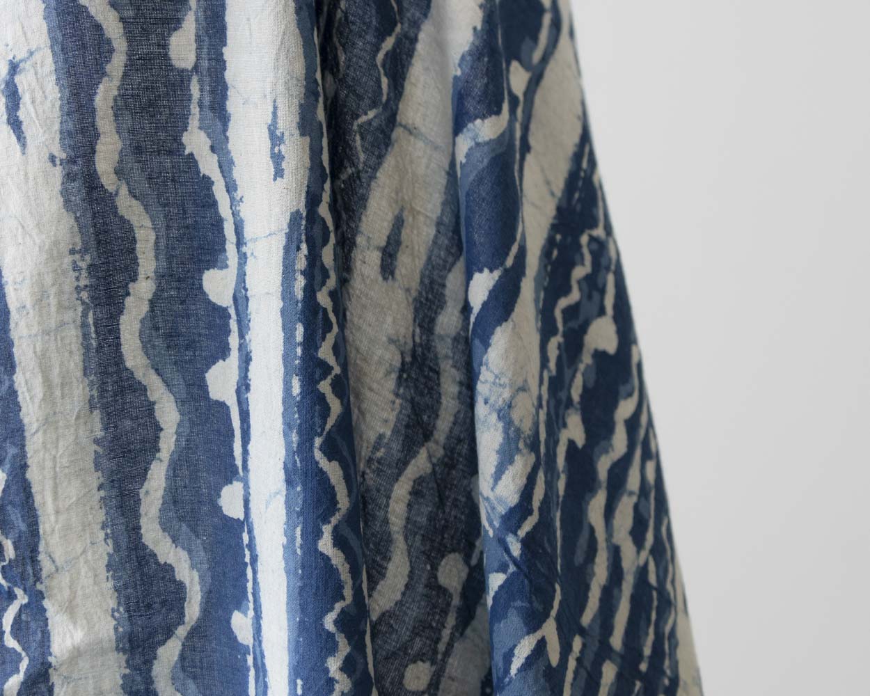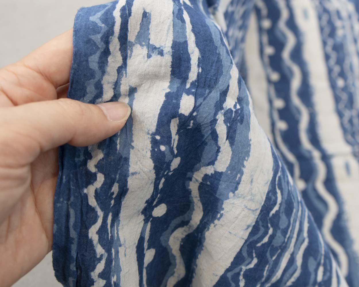 バグルー村に伝わるダブと呼ばれる泥のようなものを使って、防染する防染技法を用い、indigoで染め上げています。