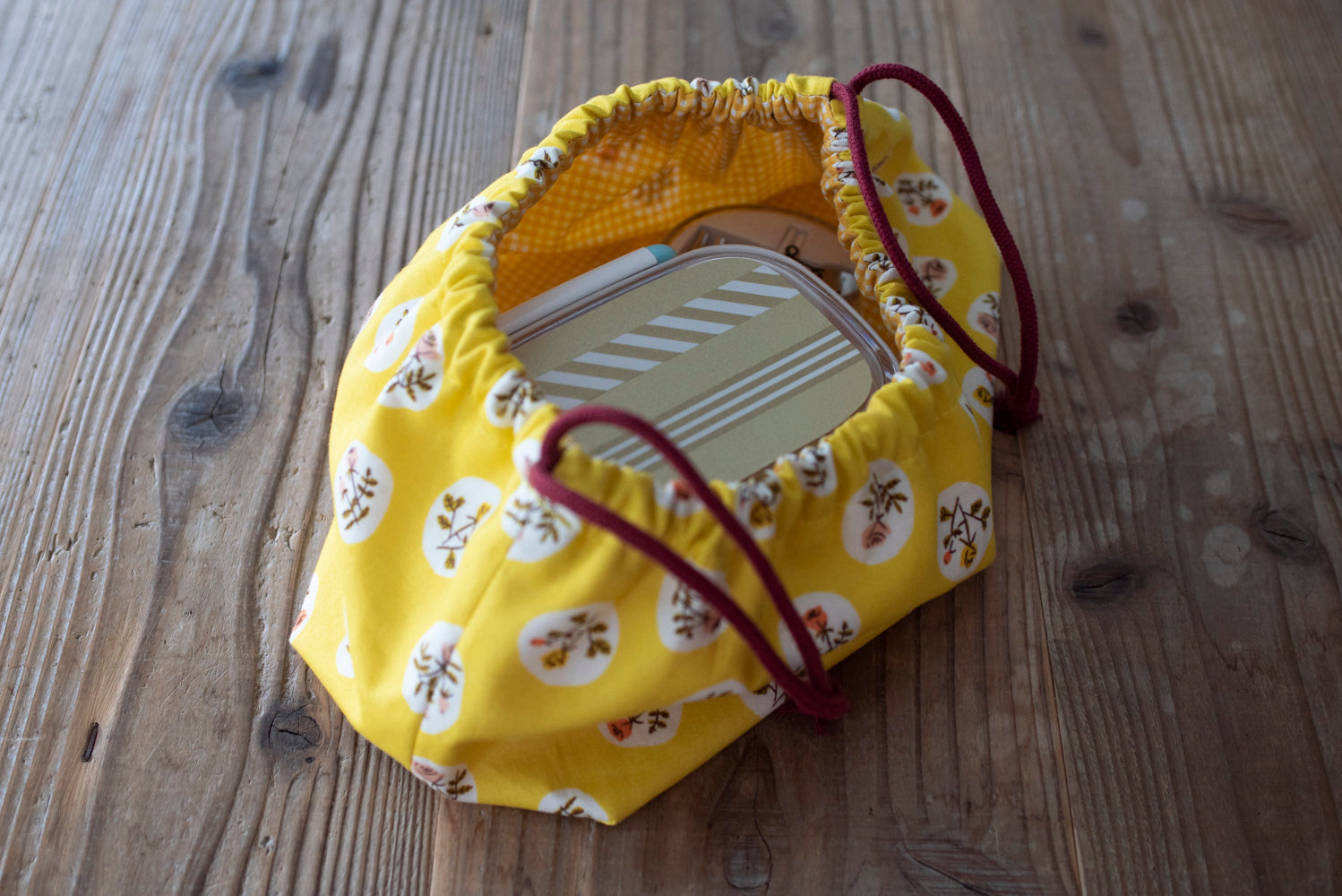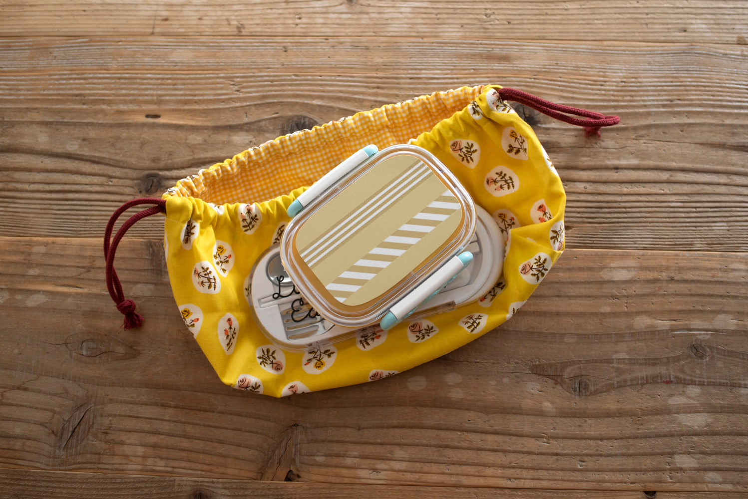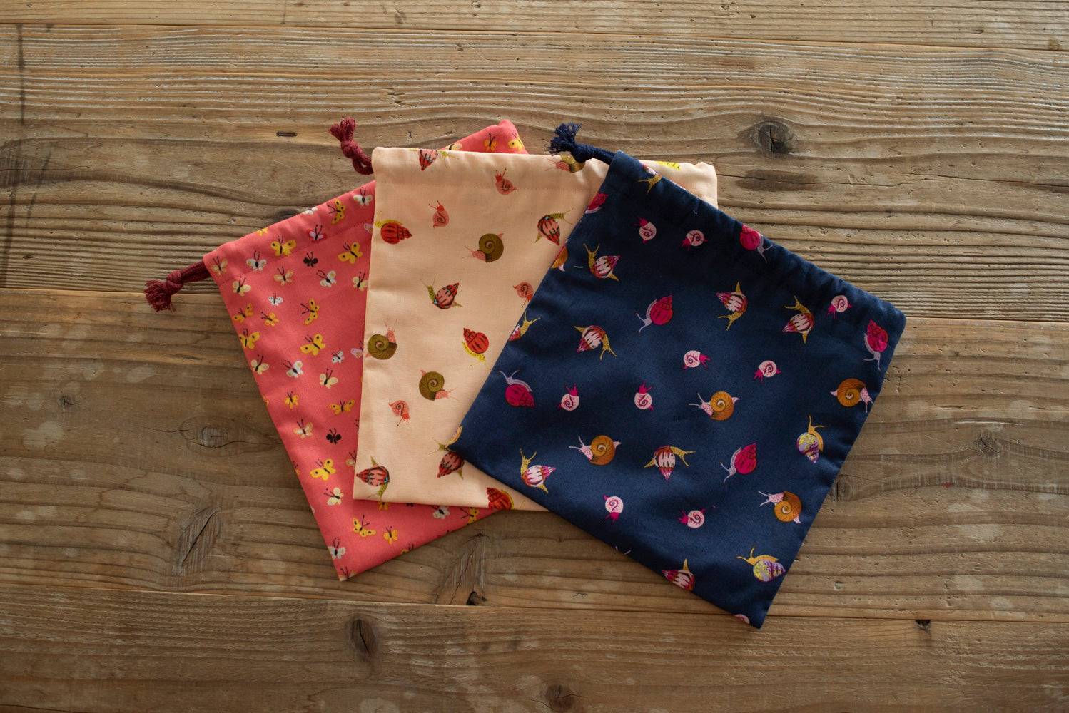・巾着セットはお揃いの生地で2種類の巾着(お弁当袋・コップ袋)が作れます。(写真上段)