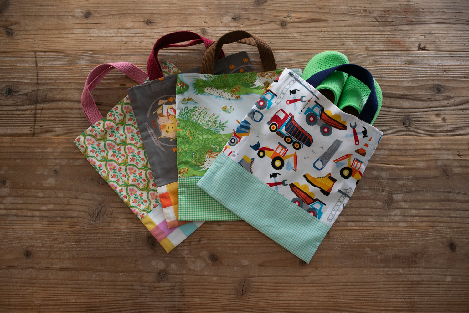 ・バッグセットはお揃いの生地で3種類のバッグ(お着替えBag・うわぐつBag・絵本Bag)が作れます。(写真下段)