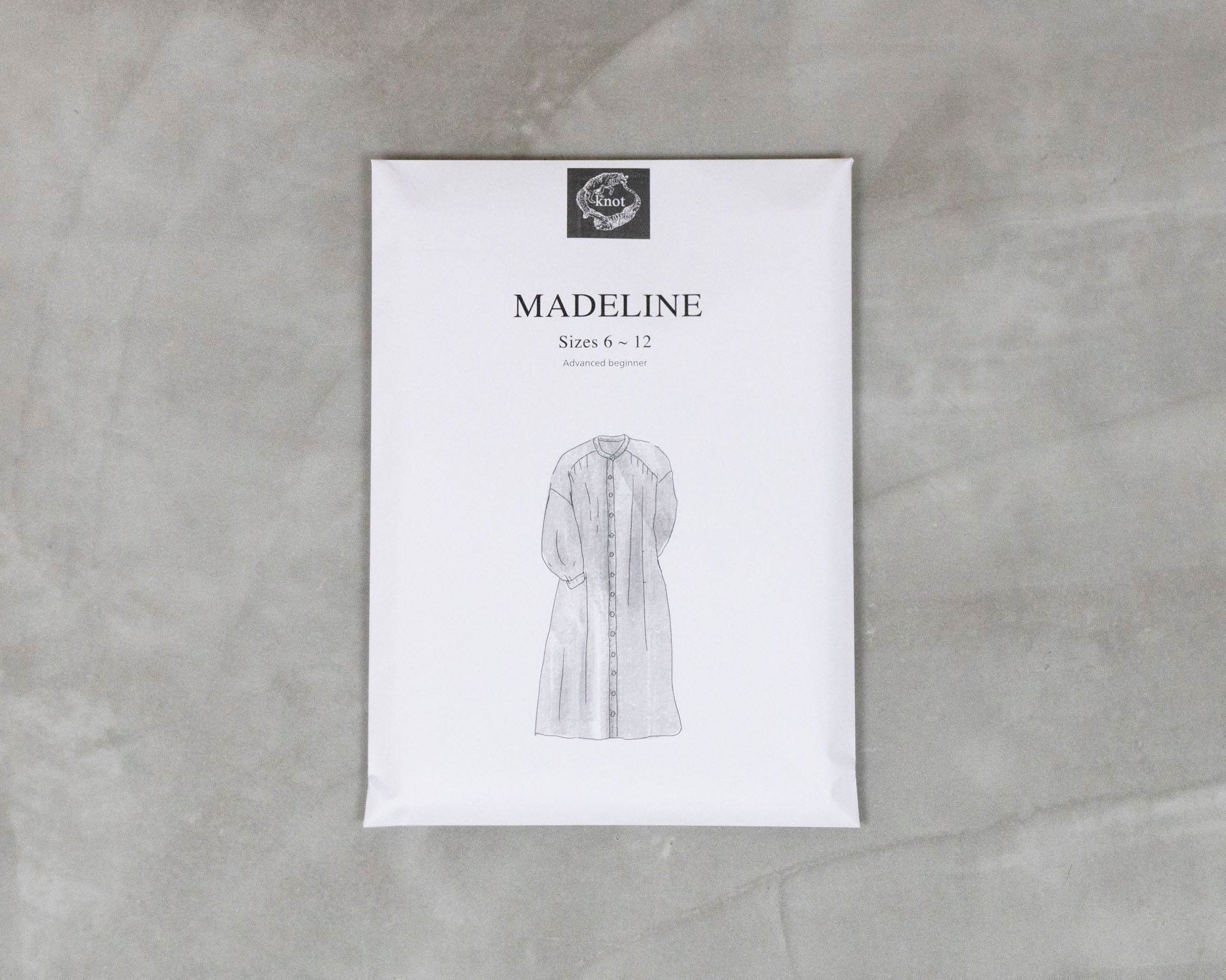 Madelineは、裾に向かってふわりと広がる前開きのワンピース。ヨーロッパ中を勇敢に冒険した女の子みたいに動き回れるように、裾に向かってたっぷりと広がるようにしました。彼女よりは歳をとった私たちがきれいに着られるように、肩にはタックを畳んでボリュームが出ないようにして、また、ポケットを前方に配置して使いやすく、かつ縦のラインができてすっきりと見えるようにしました。