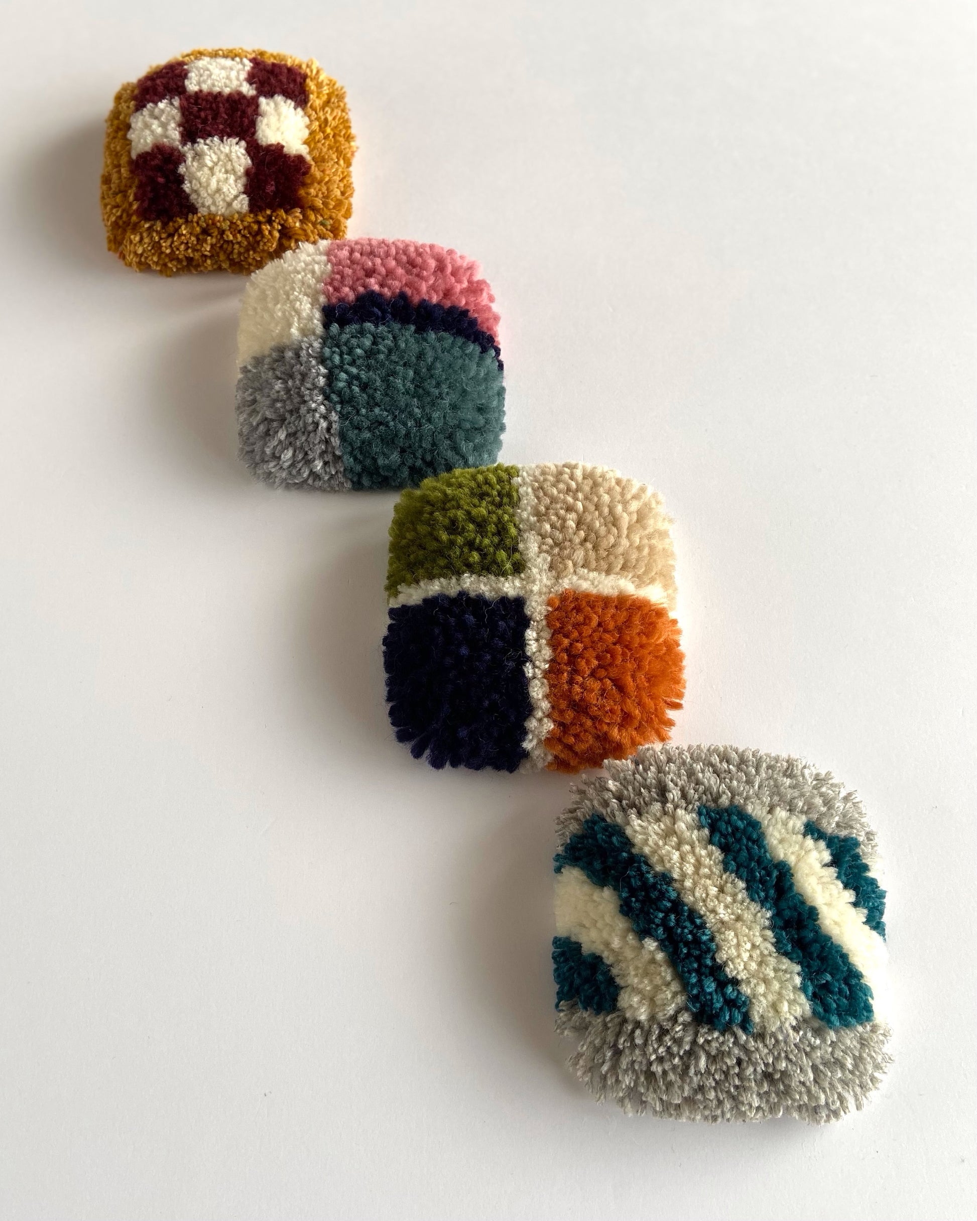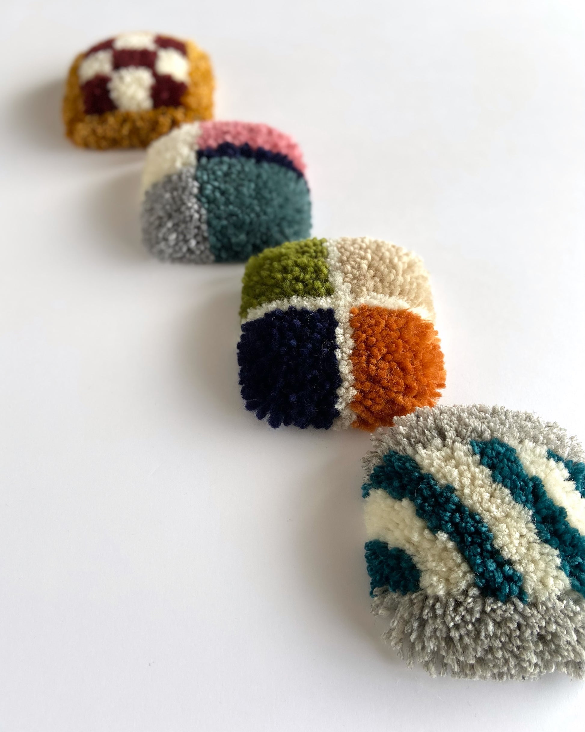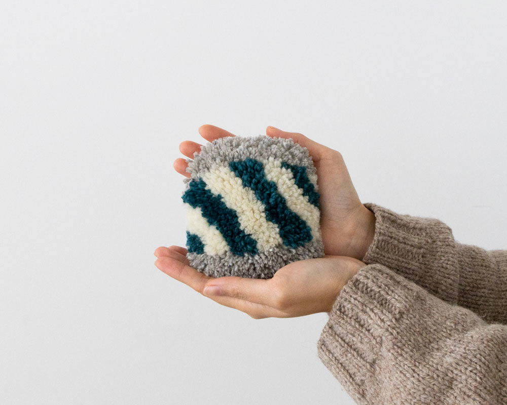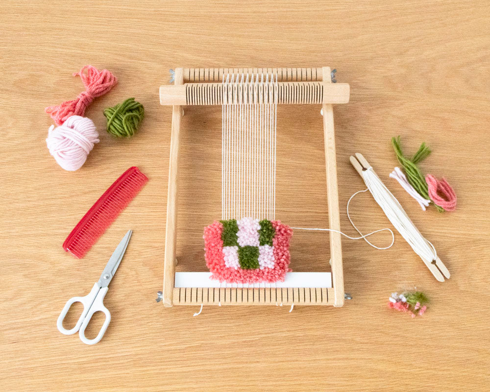 小さな織り機で織り上げる、軽くてふわふわのオブジェです。