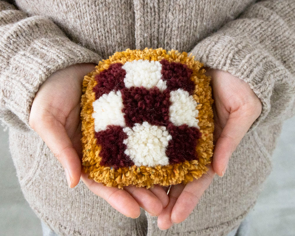 ノッティングという技法で手のひらサイズのタペストリーを作ります。