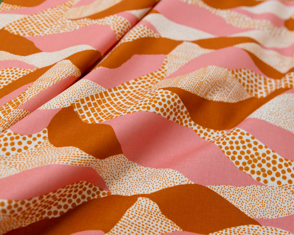 高品質なモダンコットンやキャンバス生地を展開し、ソーイングやキルト制作に幅広く人気。デザインには日常の小さな喜びや個性を大切にする想いが込められています。