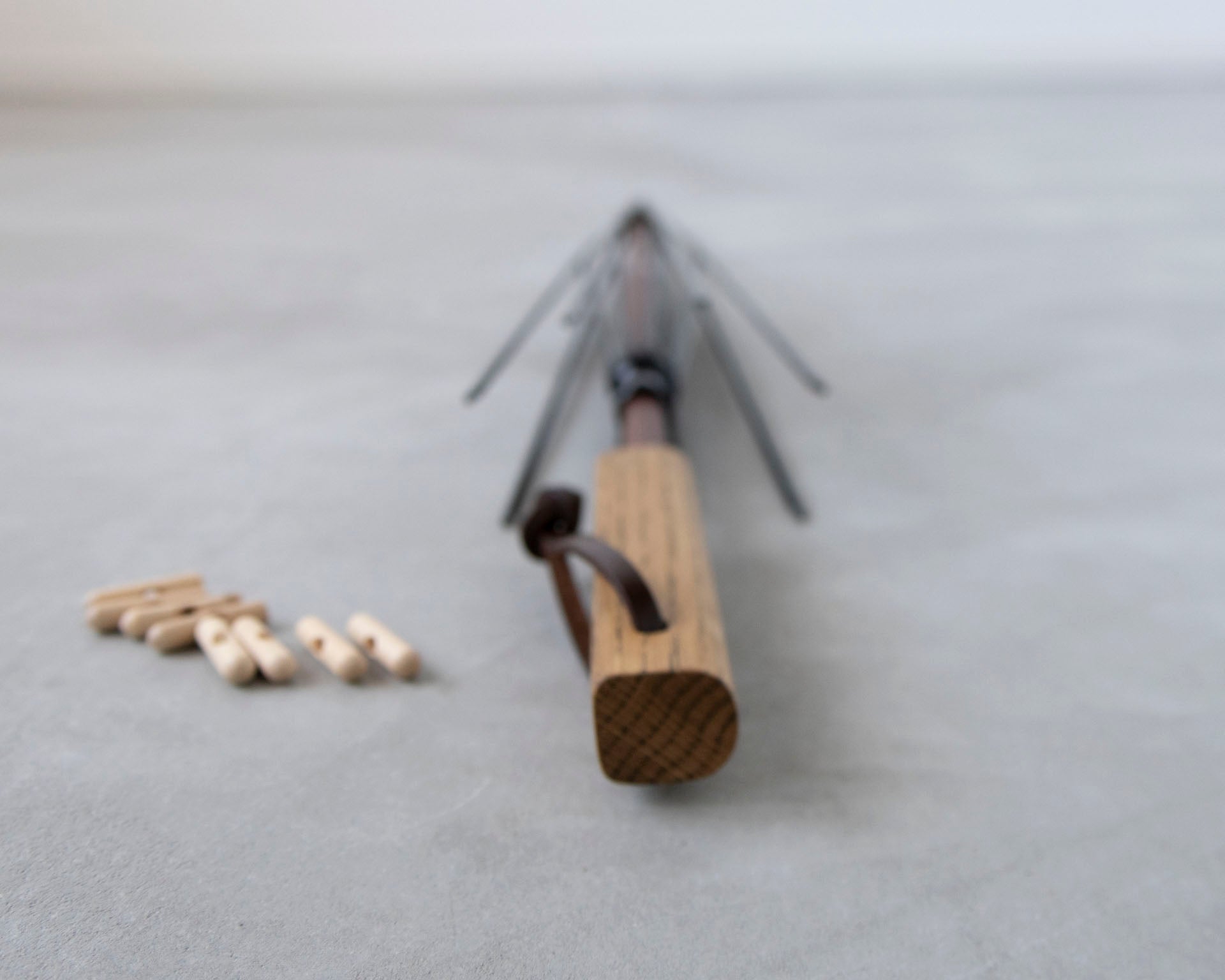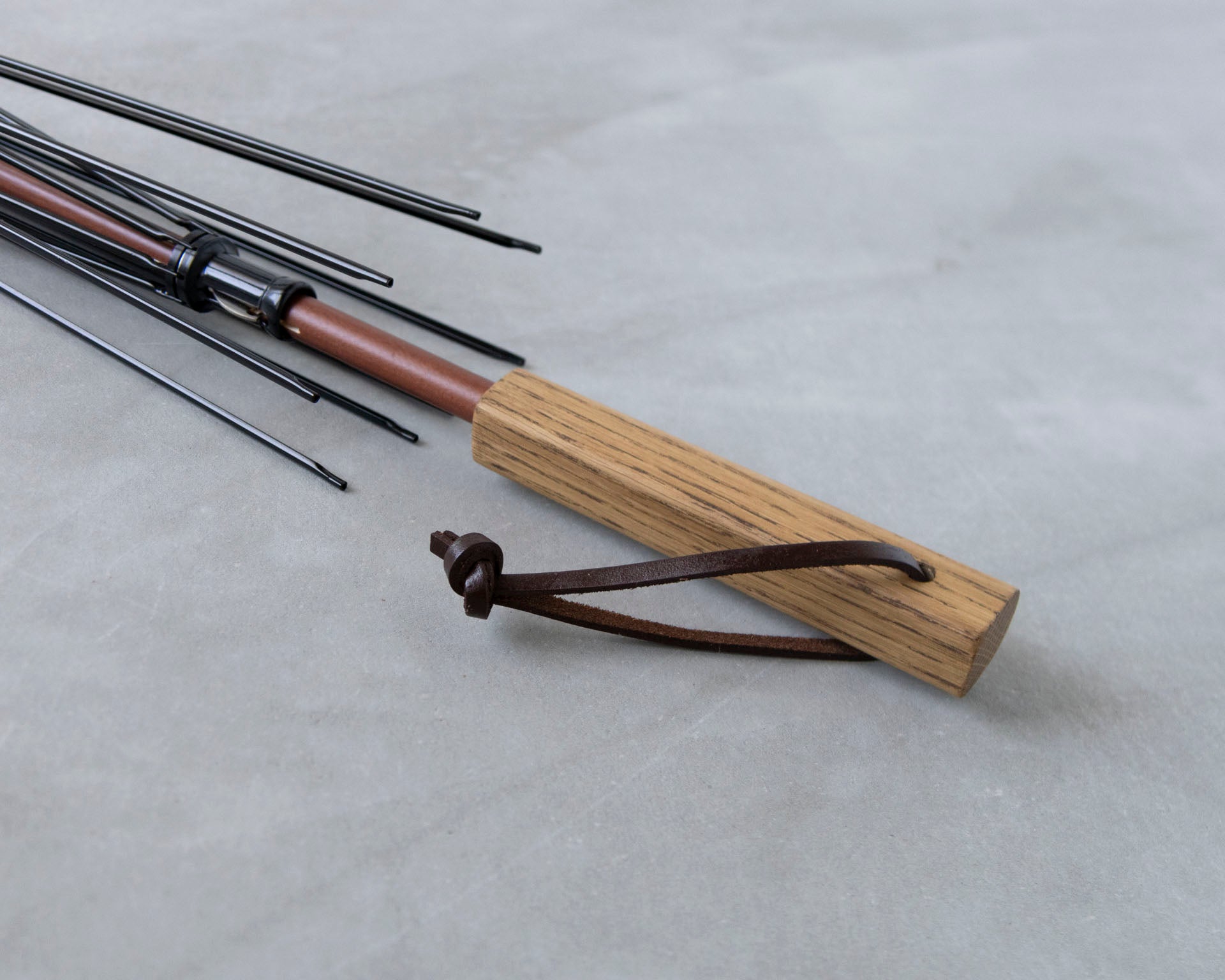 持ち手は職人により一点一点作られています。市販ではなかなか見かけないナラ材の持ち手は、手触りがとても心地いい。