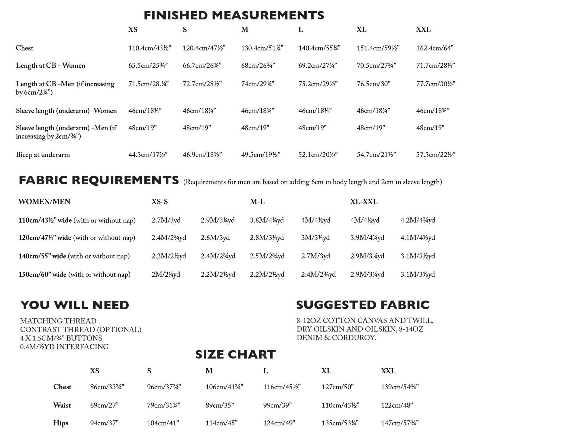 メンズサイズとして着る場合は、型紙上の指示に従って着丈を長めに調整してください。