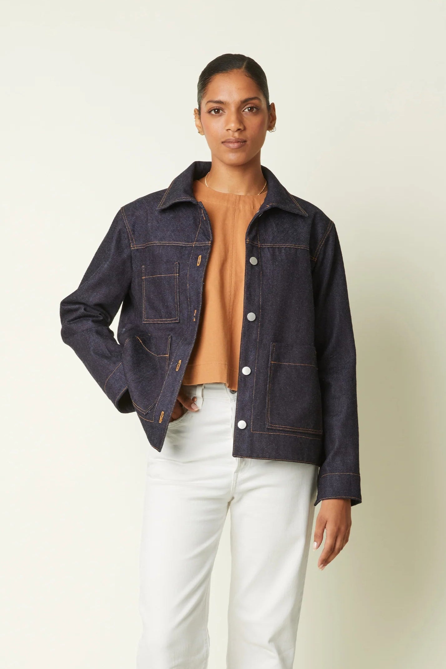 バージョン B: すっきりとしたシルエット。ハイウエストのジーンズやワンピースに合わせやすい少し短めの丈。